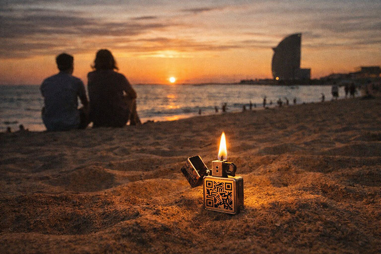 Follow a lighter from a Berlin bar to a Barcelona beach — each scan adds a new chapter.